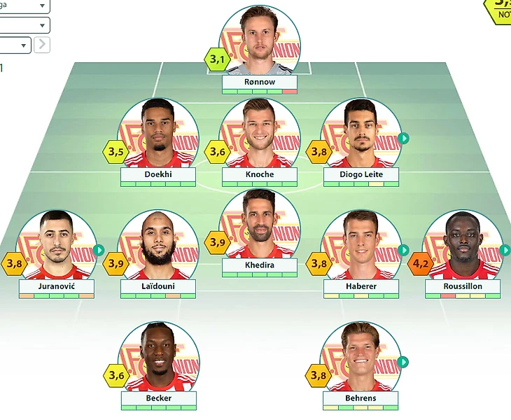 «Унион» Берлин: Реннов – Дуки, Кнохе, Лейте – Юранович, Лайдуни, Хедира, Хаберер, Русильон – Беккер, Беренс