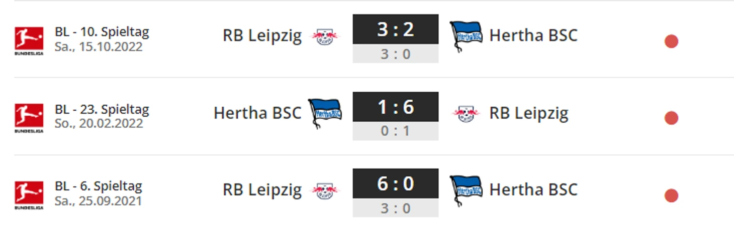 «РБ Лейпциг» не выигрывал в Бундеслиге ни у одного другого соперника столько матчей (11 из 13) и забивал так много голов (48), как «Герте». В выездных встречах «быки» выиграли у берлинцев все шесть матчей чемпионата.