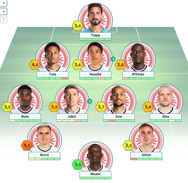 «Айнтрахт» Франкфурт: Трапп – Якич, Тута, Ндика – Бута, Роде, Соу, Макс – Камада, Гетце – Коло-Муани