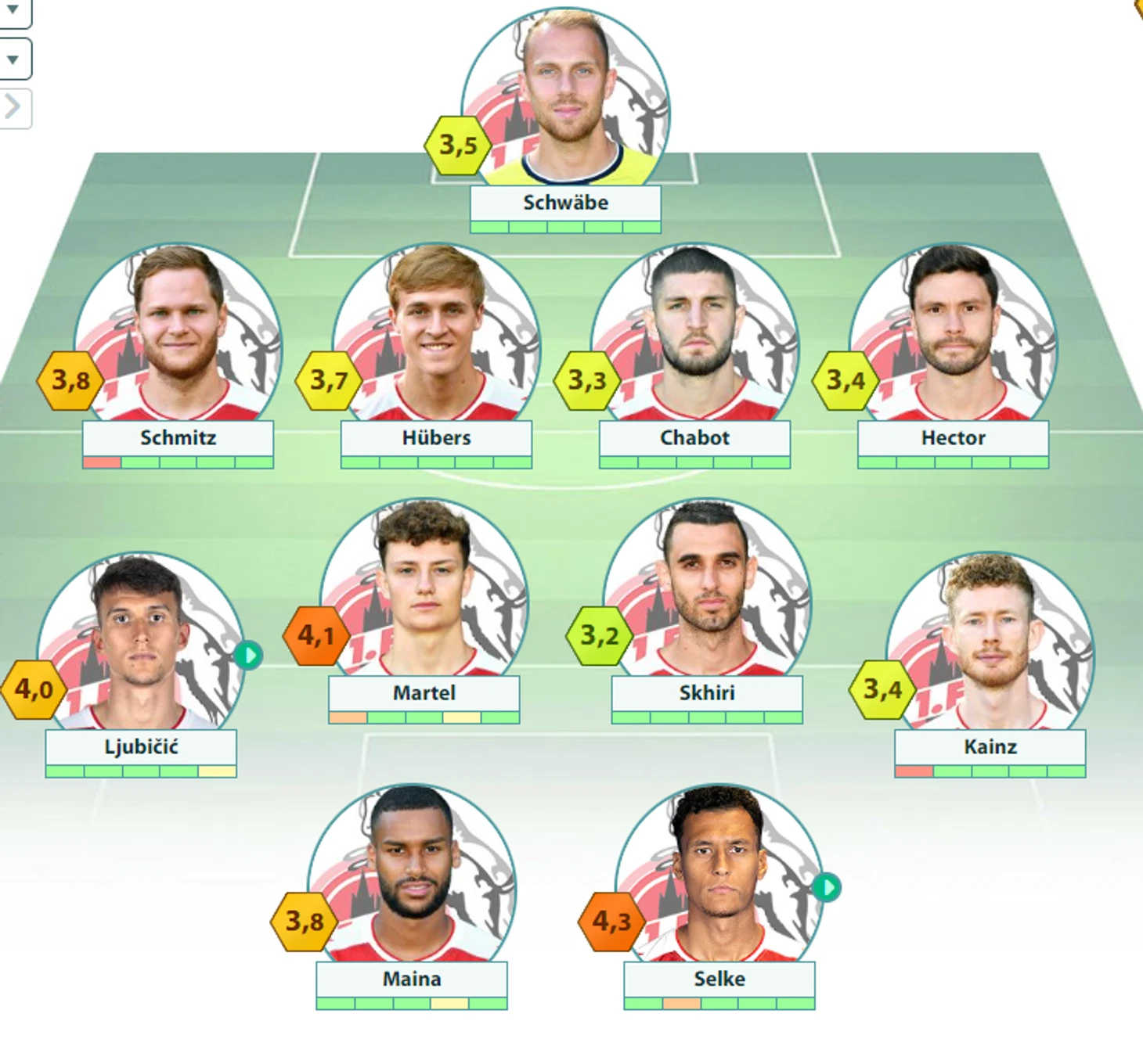 Возможные потери: Бруун Ларсен, Че, Даббур, Дольберг, Премель, Сков (нет) – Хекерен, Караман, Кодзуки, Польтер, Уронен, ван дер Берг (Латца)