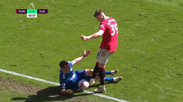 Некрасивый поступок Мактомини в матче с «Эвертоном»: пнул мяч в Коулмэна, когда тот был на газоне