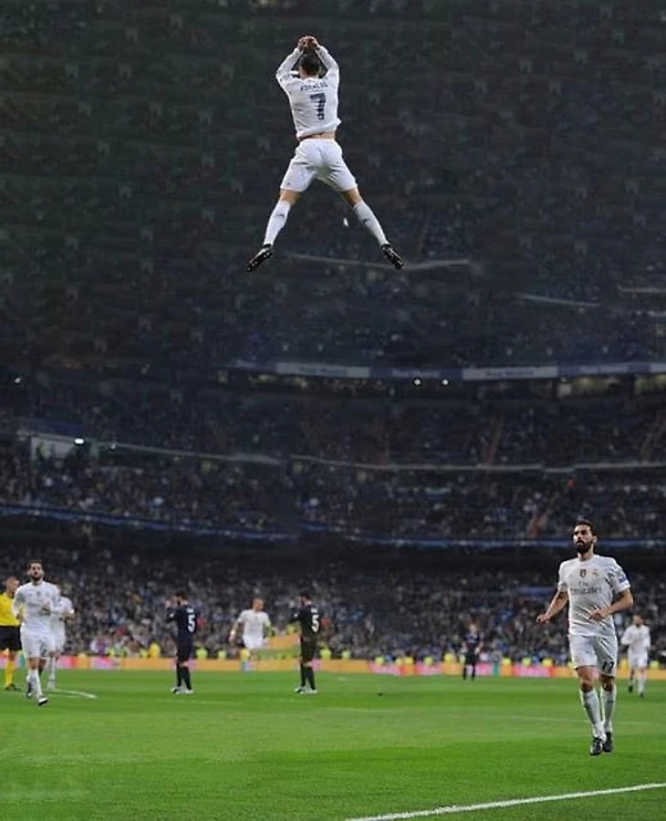 Забивает и бежит к трибуне , фанаты Меееееее а рюналду в ответ Сиииииии.
