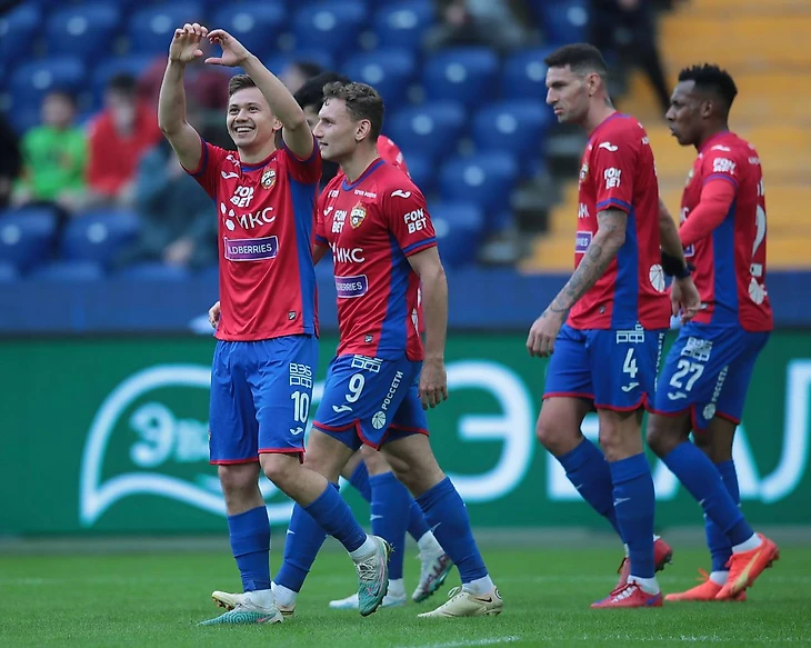 После такого нереализованного момента армейцы сильнее включились и начали классно комбинировать, благодаря чему забили два гола дуплетом. Сначала Чалов неплохо разобрался на фланге и адресовал пас Облякову, который очень круто развернулся и пробил в самый угол. Все-таки с третьей передачи от Феде Ваня смог забить мяч. Спустя минуту уже Обляков отдал ассист – россиянин дал изящную проникающую передачу, которой уверенно воспользовался Зайнутдинов и упрочил счет на табло. Перед самым перерывом красно-синие насели на ворота гостей и после паса с фланга от Мойзеса уже Чалов мог забивать свой гол, но пробил чуть выше перекладины.