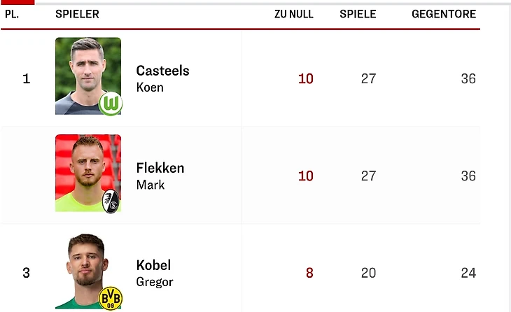 *игрок – кол-во игр – % отраженных ударов – пропущено мячей – матчи на ноль