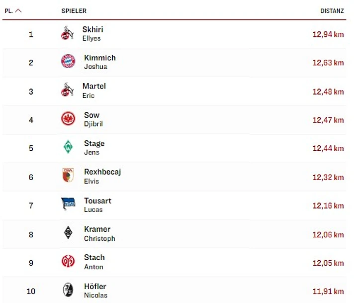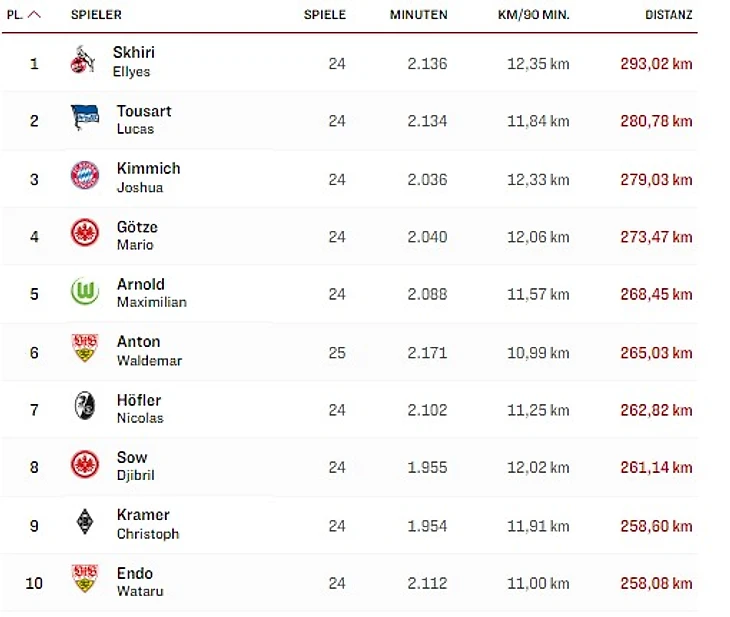 *игрок – кол-во игр – кол-во минут – в среднем км за 90 мин – всего км