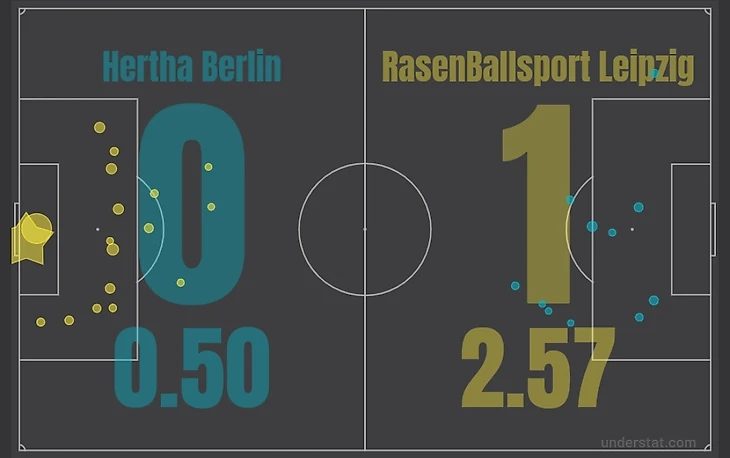 «РБ Лейпциг» выиграл у «Герты» все семь гостевых матчей Бундеслиги.