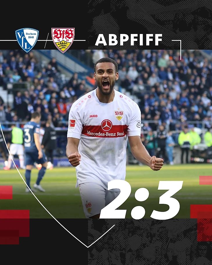 После перерыва игра заметно открылась — «Бохум» и «Штутгарт» на двоих выдали 10 ударов в створ. Первыми чужую оборону взломали хозяева — Кевин Штогер на 58-й отличился с пенальти. Однако в следующие пять минут судьба поединка была практически решена. На секунду вспомним кубковую победу «швабов» над «Нюрнбергом» — тогда существенное влияние на игру оказали вышедшие на замену Серу Гирасси и Энзо Мийо (последний и вовсе забил победный гол). Матч с «Бохумом» оба начали в старте, и без результативных действий с поля не ушли ни гвинеец, ни француз. Проблемой для хозяев неожиданно стали кроссы с левого фланга атаки «швабов». Сперва после передачи Борна Сосы ворота с линии вратарской расстрелял Гирасси — 1:2. А затем Мийо отыскал пасом голову Джоши Вагномана — 1:3. Все, чем смог ответить «Бохум» — гол Хофманна за 5 минут до конца основного времени. 2:3 — «Штутгарт» побеждает на выезде в Бундеслиге впервые с 2021 года и покидает зону прямого вылета, опустив туда «Герту» и «Шальке».