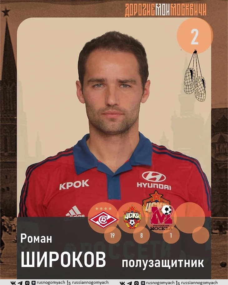 Хотя. Роман Николаевич воспитанник Торпедо и ЦСКА. Еще в 1998 году он был заявлен за армейцев, но смог сыграть только двойку. В 2001 году был переход в Торпедо-ЗиЛ. С этого единственного матча за автозаводцев (на котором автор был лично) мы и начинаем отчет его игр за московские клубы. Правда, этим матчем все и ограничилось у Романа на Восточной улице. Потом были путешествия по Москве и области и даже Казани, пока он не осел в Химках. Дальше была командировка на 6 лет в Северную столицу. А дальше пошли скандалы - переход в Спартак в 2014. Потом транзитом через Краснодар переход в ЦСКА в 2016. Этого уже никто не простил ему. Рома стал нелюбим всеми. Там он и закончил карьеру. Сейчас стал ген.директором Сатурна, а до того отметился еще в одном московском клубе - Динамо - в качестве спортивного директора.