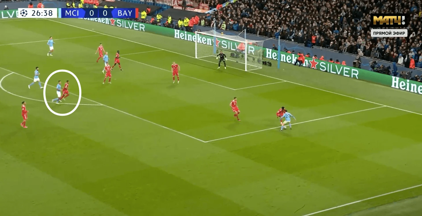 Возможно, ключевой момент четвертьфинального противостояния «Ман Сити» и «Баварии» – удар Родри с левой!
