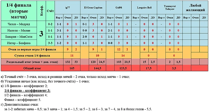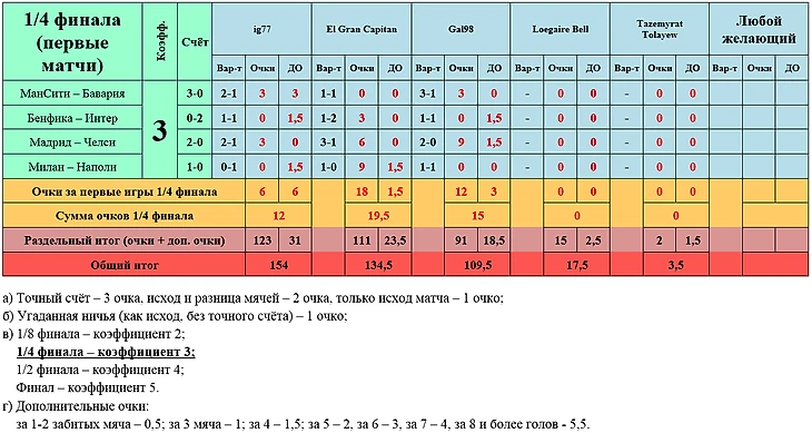 Итоги 1/4 финала -