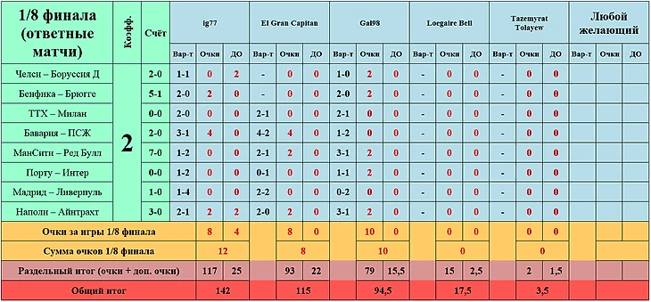 Чуть запоздало, но подводим итоги игр 1/8 финала -