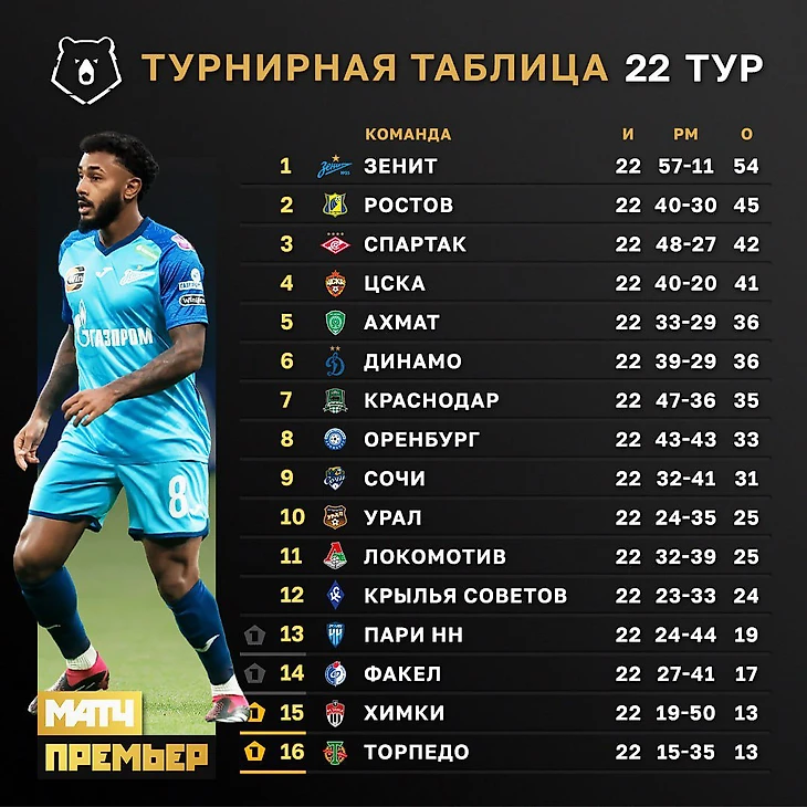 "Оренбург" опускается на восьмое место в таблице. Но есть и хорошие новости. Во-первых, пятое место все еще близко. Во-вторых, увеличивается отрыв от команд снизу. Вряд ли "Оренбург" по итогам сезона опустится ниже 9-го места.