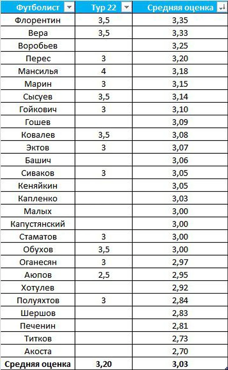 Отмечу Сысуева - он совершил серьезный сейв. Николай по итогам тура обошел по средней оценке за сезон Гошева и Кеняйкина. Хотя однажды Сысуев чуть не начудил (впервые в этом году).