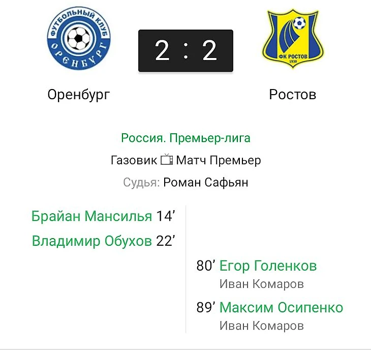 - "Оренбург" во втором тайме мало что создавал, но и не позво»ял создавать сопернику. До 80-й минуты ничего не предвещало камбэк "Ростова".