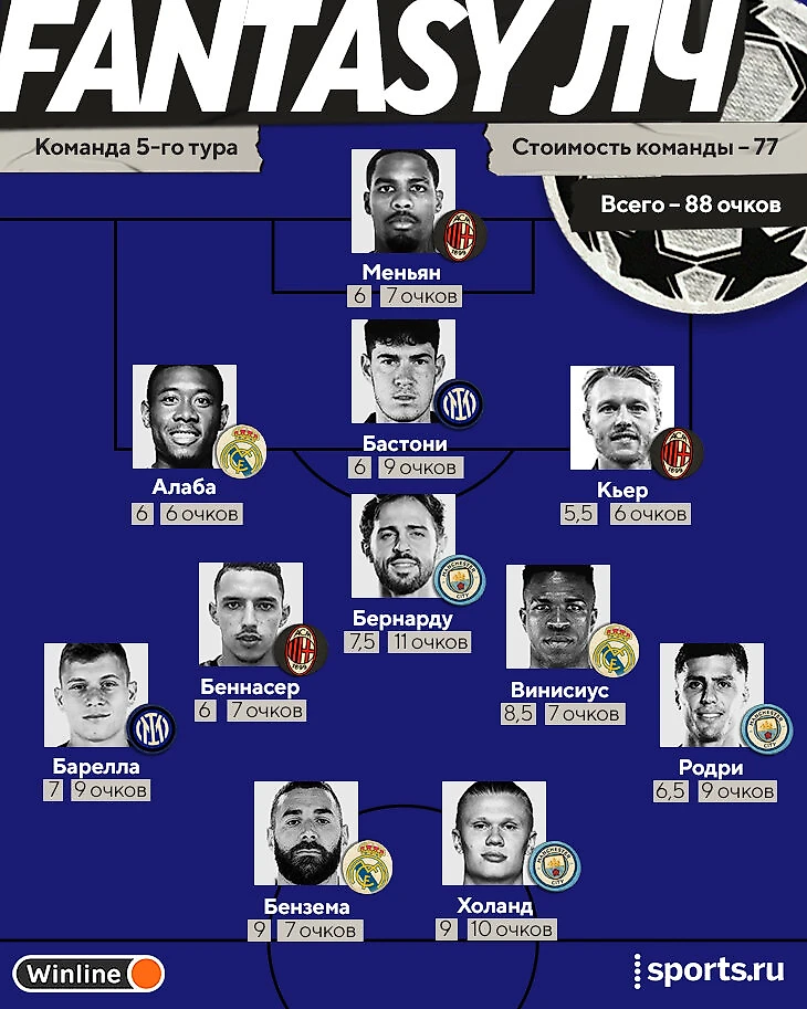 • состав – лучшее, что можно было получить в туре, если собирать команду по фэнтези-правилам (общая стоимость – 100, максимум четыре игрока из одного клуба, при равенстве очков проходит более дешевый).