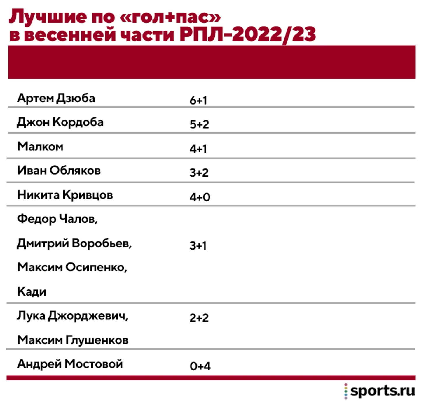 Обляков очень опасен весной: участвовал во всех победных атаках и создает моменты из разных ситуаций