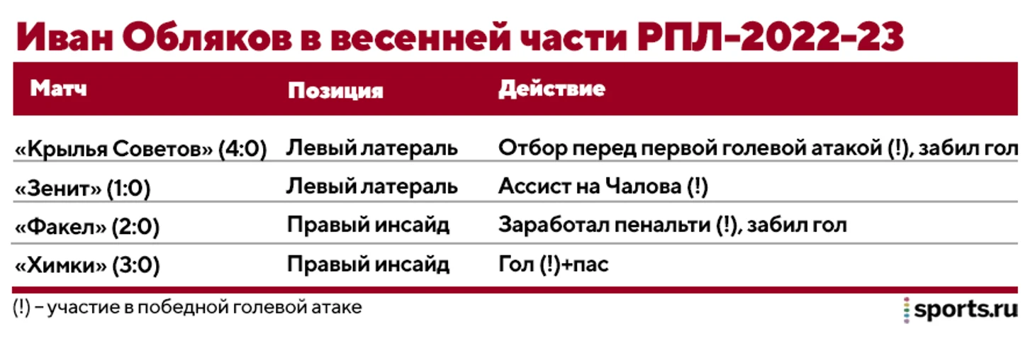 • Иван Обляков шикарно начал весну: выходил левым латералем и правым инсайдом (подобное было и в первой части сезона).