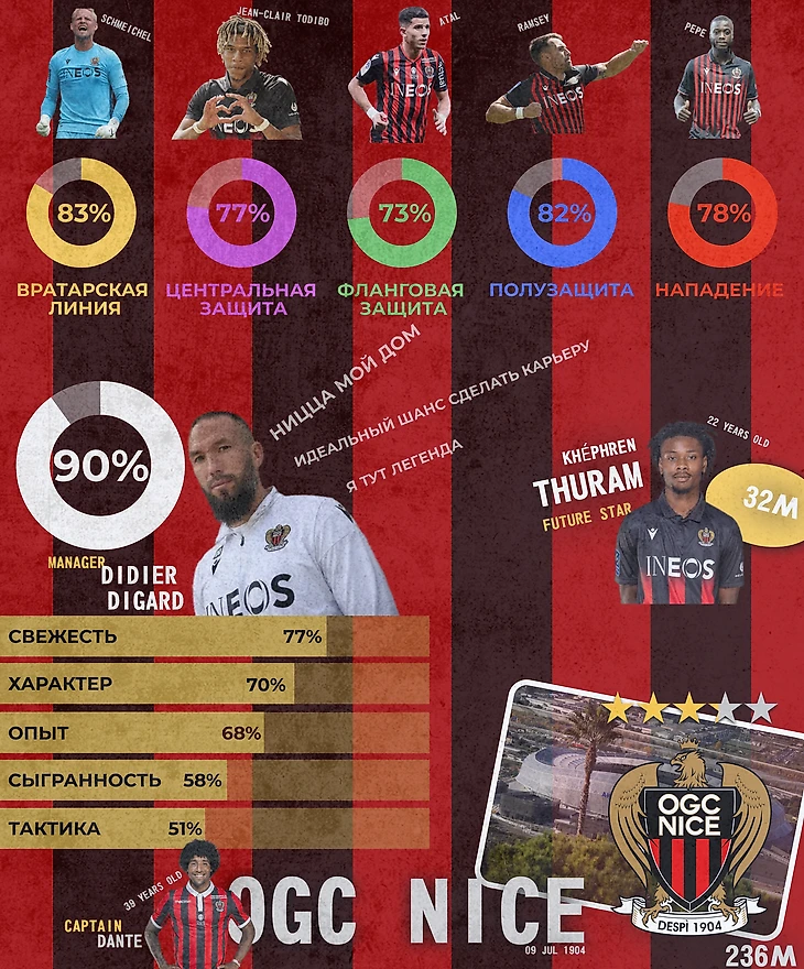 Лазурное побережье, яркое солнце, потрясающие пляжи и очень интересный футбольный клуб с большой историей и дикими «фанами». В этом году они могут привезти в город кубок Лиги Конференций. Что происходит в команде, и кто «тащит» клуб к победе. Давайте, разбираться.