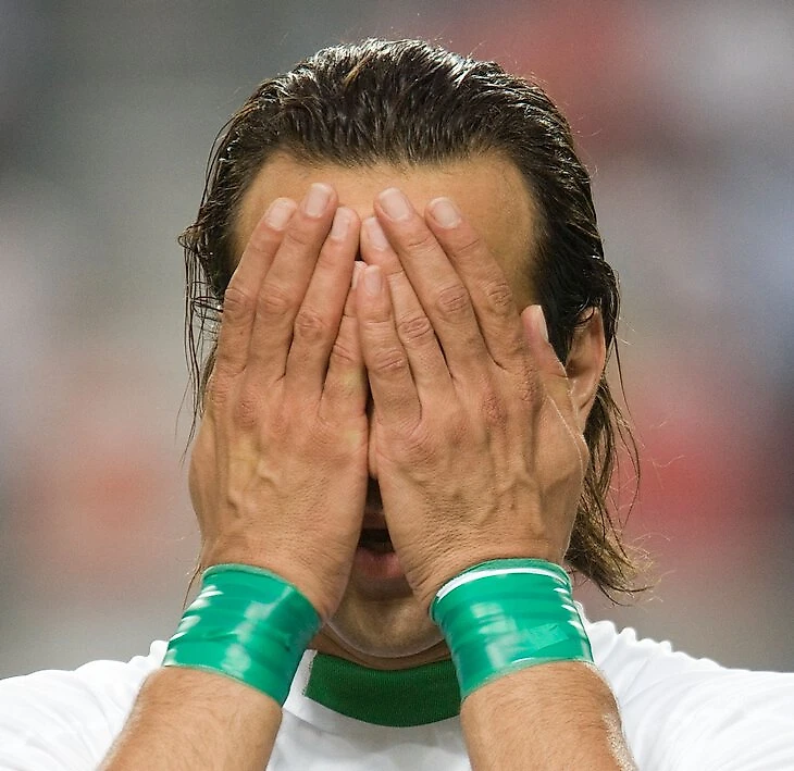 ✊🏼 Квалификация ЧМ-2010 – футболисты носят зеленые браслеты как символ протестов против результатов президентских выборов.