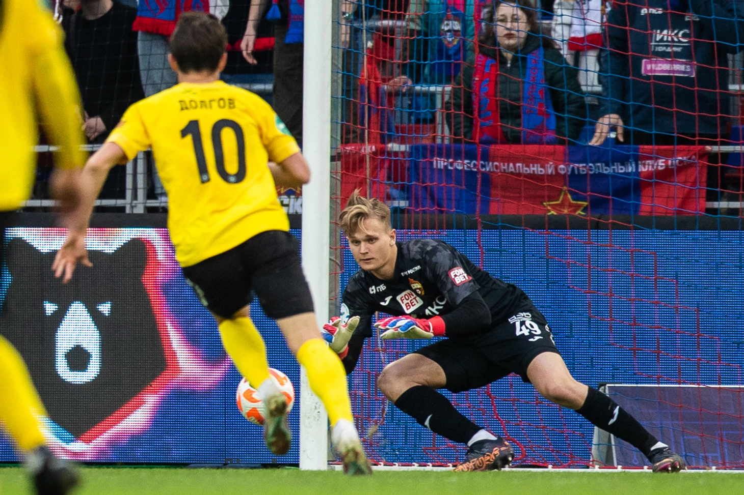 Самый скандальный матч тура, о котором много говорил ЭСК РФС. Спартачи начали достаточно неплохо эту игру: много владели, создавали опасность у ворот Шунина и заслуженно первыми забили гол. Хлусевич получил навес от партнера в штрафной и отдал пас на Соболева, который был один и уверенно реализовал свой момент. Центр защиты гостей ошибся и просто оставил нападающего одного.