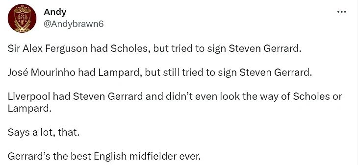 Английский фанат «доказал», что Джеррард был лучше Скоулза и Лэмпарда – тремя (!) предложениями