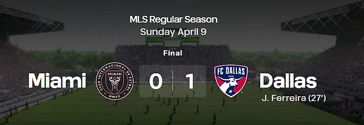 Майами снова проиграл и стал второй командой в истории MLS, которая проиграла 5 игр подряд после 2 побед на старте.