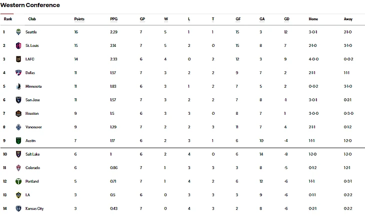 А вот Сент-Луис перестал быть непобедимым и на первую строчку Западной конференции забрался Сиэтл. Правда по потерянным первый Лос-Анджелес. В общем, гонка предстоит нешуточная, похоже. Только вот между Сиэтлом и Лос-Анджелесом или Сент-Луис не спекся и все-таки даст бой прославленным соперникам?