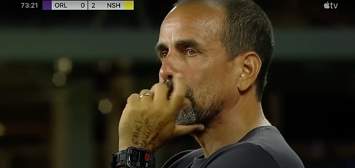 Орландо проиграл дома Нэшвиллу 0:2 и я не стал бы упоминать этот матч, но никак не могу разобрать, что а Парехи написано на руке.
