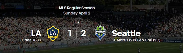 В игре с Сиэтлом уже к 35 минуте Гэлакси летел 0:2. После второго мяча Сиэтл сбросил скорости и начал играть строго от обороны. Статистика по ударам за последние 55 минут матча 22:3 в пользу хозяев.