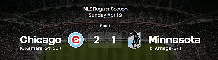 А вовремя ушедший из Монреаля в Чикаго Кей Камара сделал дубль в игре с Миннесотой и теперь у него 142 забитых мяча против 145 Лендона Донована, идущего вторым в списке бомбардиров MLS.