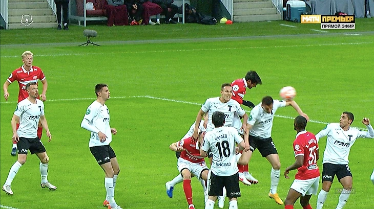 Но вот «Спартак» снова запорол: бил пошел Руслан Литвинов, получилось так себе. Егор Бабурин потащил в левом для себя углу.