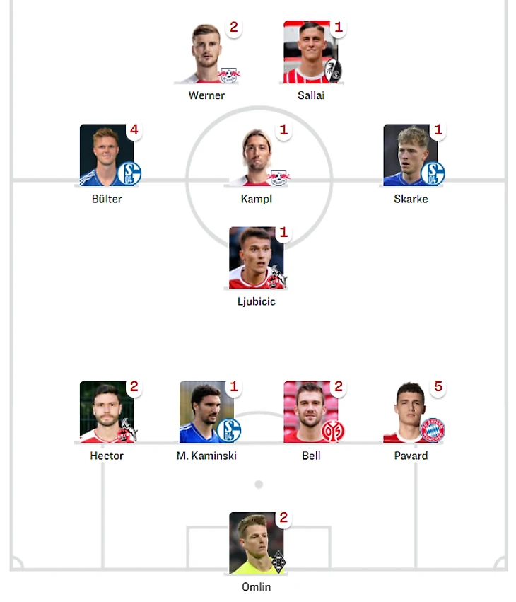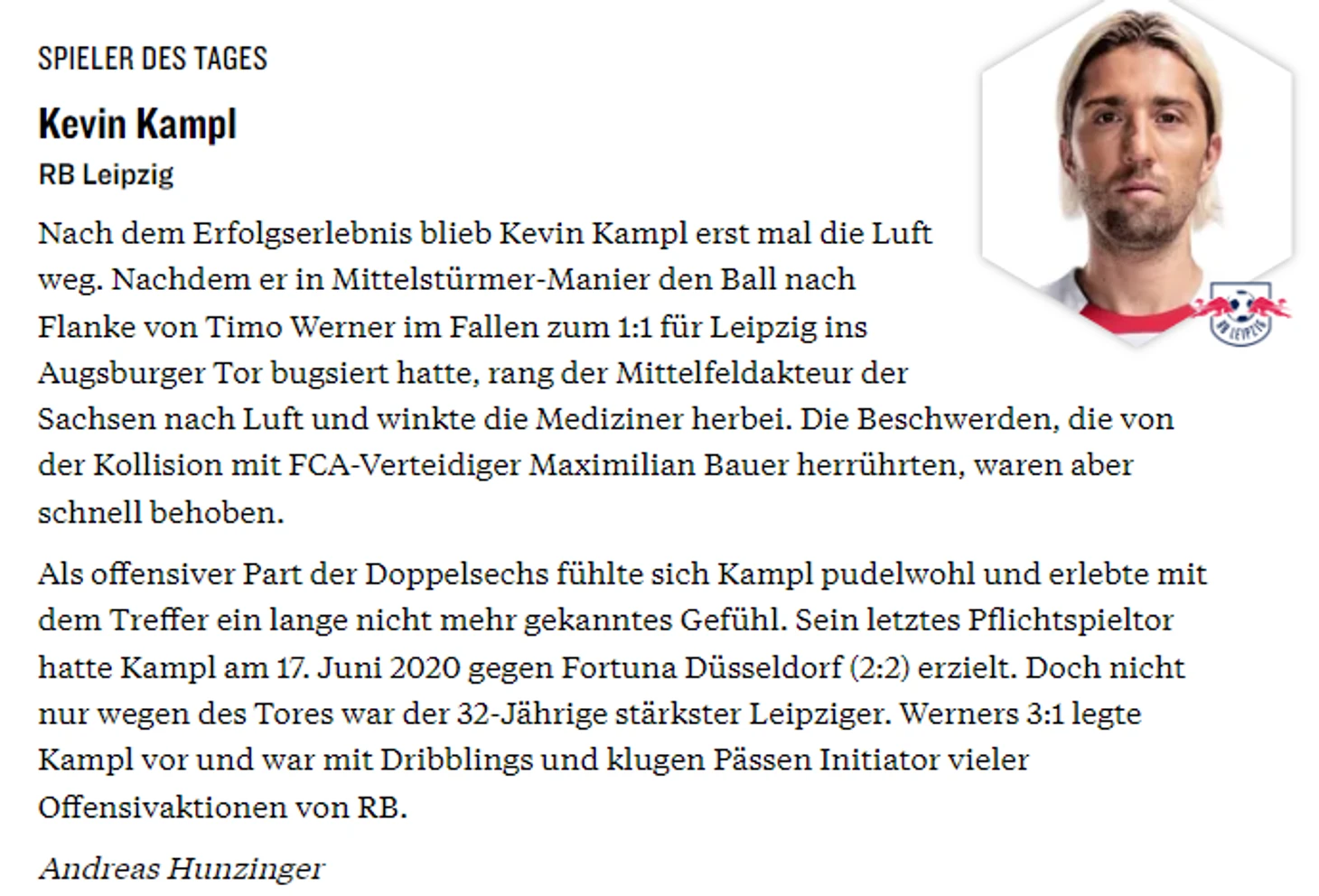 3) После матча с «Аугсбургом» список бомбардиров «РБ Лейпциг» в текущем сезоне Бундеслиги пополнился 18-й фамилией. Это рекорд для всей лиги и клубный рекорд Лейпцига за всё время.