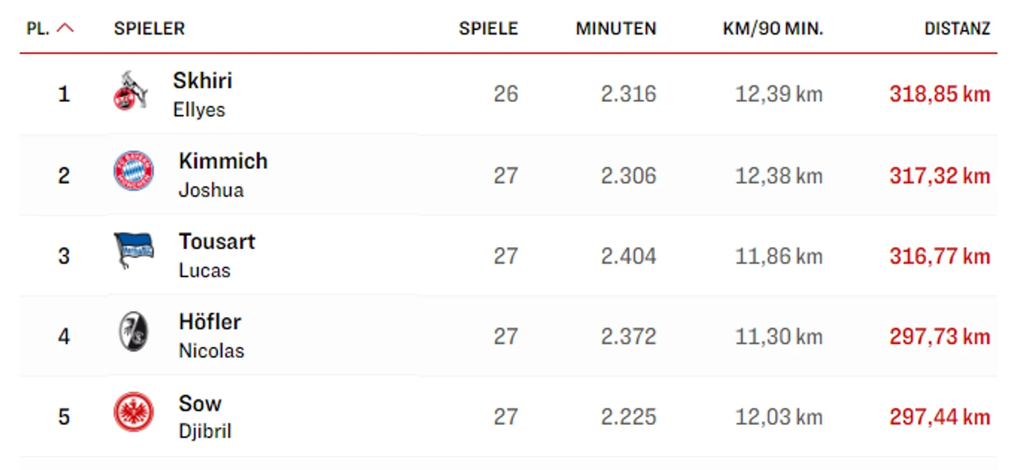 *игрок – кол-во игр – кол-во минут – в среднем км за 90 мин – всего км