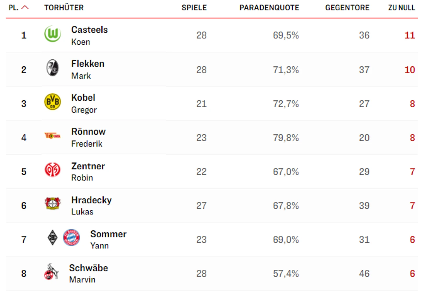 1) Ни один другой клуб Бундеслиги в этом сезоне не защищал свои ворота так же надёжно, как «Вольфсбург» (11 игр «всухую»).