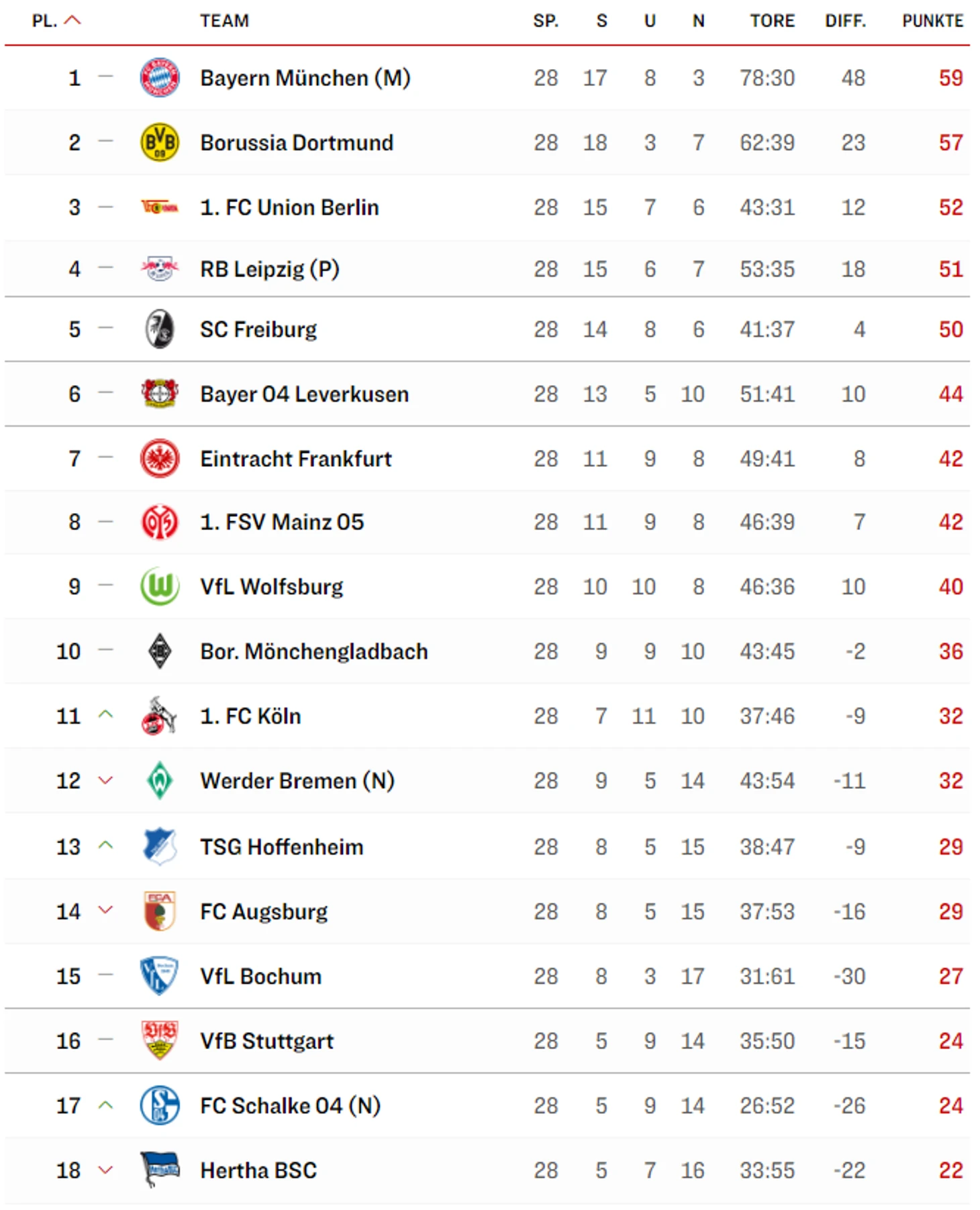 0:0. «Байер» остаётся шестым. Леверкузен дружно потерял очки вместе с «Баварией», Дортмундом и «Унионом». «РБ Лейпциг» и «Фрайбург» очень довольны таким раскладом – по итогам тура их шансы на попадание в зону ЛЧ существенно улучшились.