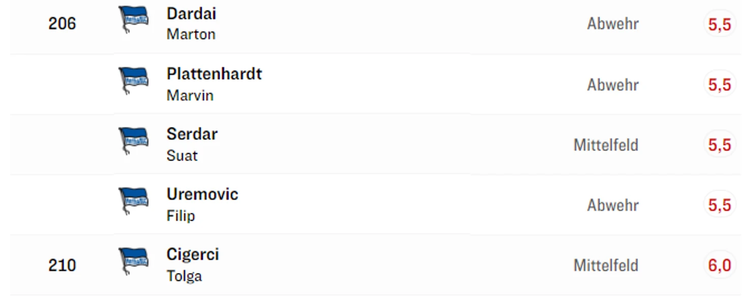 *игрок – позиция – кол-во игр – кол-во оцененных игр – оценка