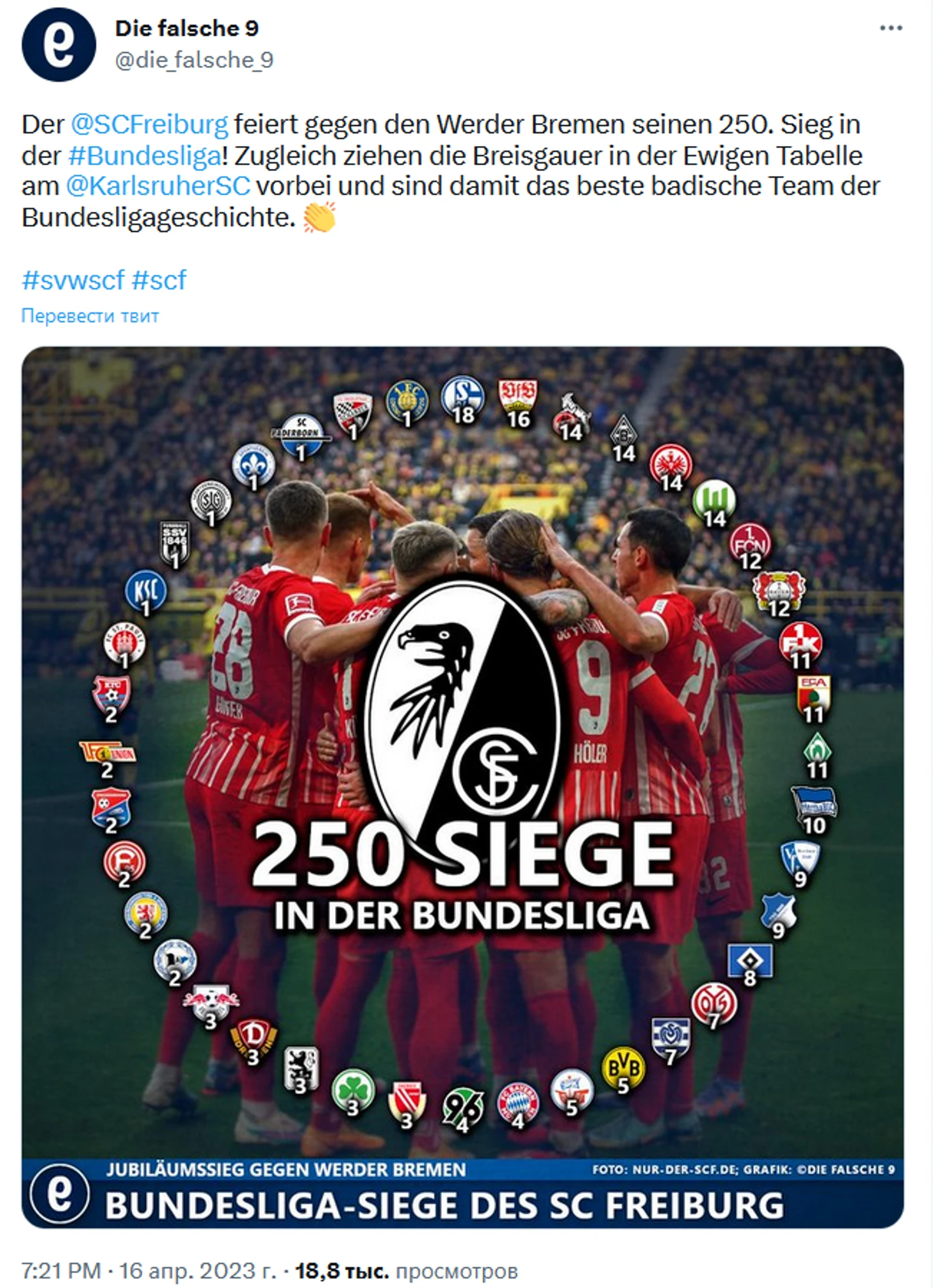 3) «Фрайбург» отпраздновал 250-ю победу в своей истории Бундеслиги, отметив этот юбилей в своей 776-й игре в чемпионате.