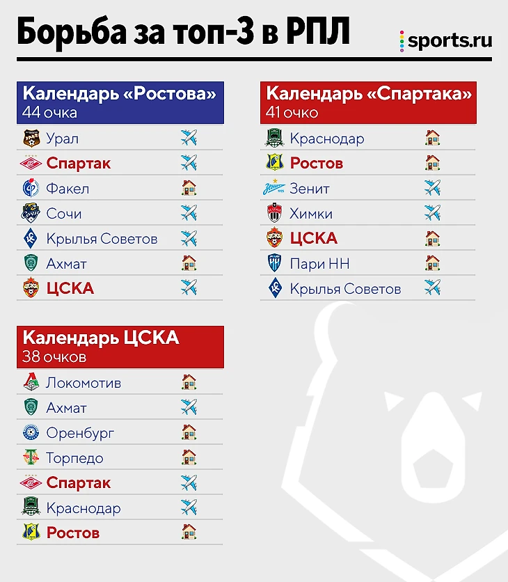 • «Ростову» придется слетать в Москву в гости к ЦСКА и «Спартаку» – то есть к прямым конкурентам. У команды беспроигрышная серия, но впереди аж пять гостевых матчей (два из них с топами).