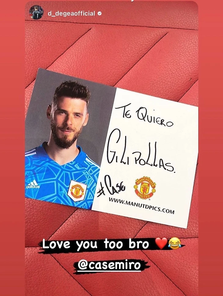 После игры против «Форест» Каземиро отправил Де Хеа милую открытку. Вратарь ответил ему