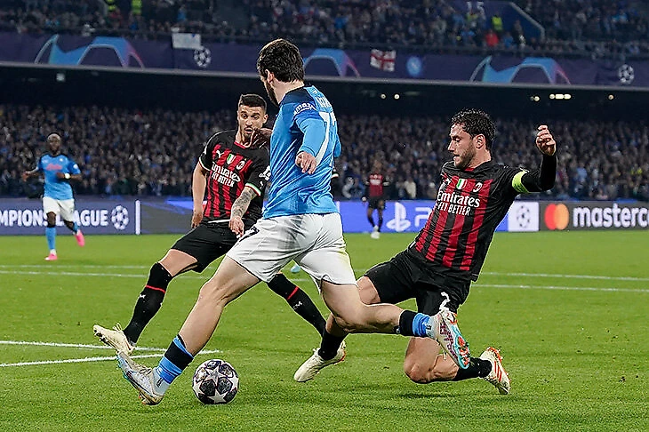 До 82-й минуты, когда «Милан» вел у «Наполи» 1:0 в ответном матче и 2:0 по сумме в четвертьфинале Лиги чемпионов, казалось, что исход ясен. Но неаполитанцам достался пенальти за отставленную в падении руку.