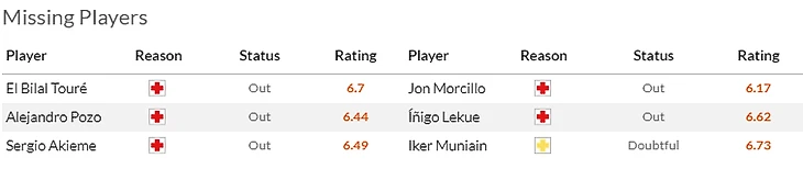 Что касается защитников Мальорки, то тут сплошные проблемы: до конца сезона вылетел Джованни Гонсалес(5), под вопросом выход на поле Настасича(5,5) и Аугустинсона(5,5).. Тут уж не до рекордов