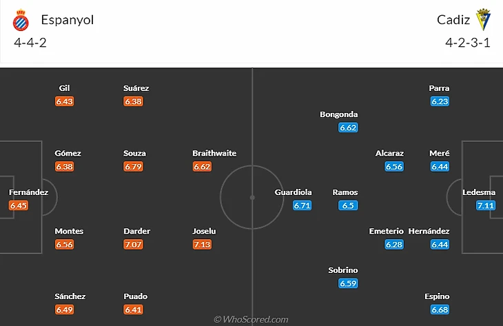 Что касается более приземленных реалий, то наконец-то вернулся в строй один из самых перспективных игроков Эспаньола Адриа Педроса(5,5). А у Кадиса одновременный камбэк совершили отбывшие дисквалификацию Ледесма(5,5) и Карселен(5,5). А вот Эскаланте(6), Окампо(6) и Хорхе Мере(5,5) из за повреждений в Каталонию не полетят.