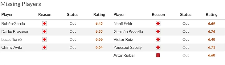 А вот с Серхио Каналесом(8) история совсем не скучная. Из-за того, что обеспечительные меры(в виде приостановки четырехматчевого бана), которые выхлопотал Бетис все еще не сняты, хавбек имеет шансы выйти на поле в Памплоне. Дома останутся травмированные Сабали(5,5) с Виктором Руисом(5,5), туманные перспективы у Хуанми(8), зато поправился Херман Песселья(5,5). Что касается хозяев, то тут пропускает тур перебравший карточек Мой Гомес(7) и травмированный Торро(6), под вопросом участие только восстановившихся от повреждений Авилы(7) и Рубена Гарсии(7).