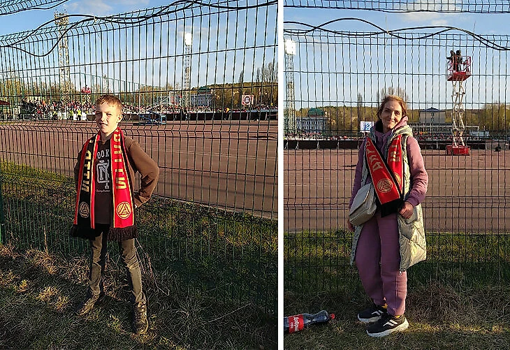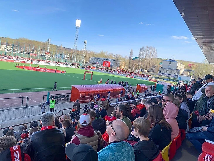 А вот и фанаты «Акрона» – эти счастливчики все-таки попали на трехтысячный стадион.