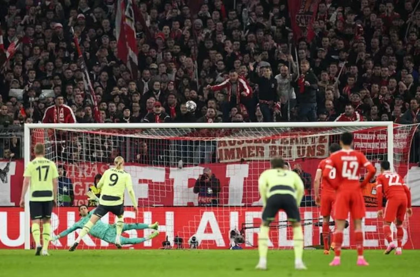 За первые полчаса игры действительно острых моментов от манчестерцев зафиксировано не было, но и у «Баварии» не получалось проломить отлаженную оборону гостей, которые начали тянуть время, пользуясь преимуществом трех голов в первой встрече. Очередной пожар разгорелся в хозяйской штрафной на 35-й минуте: неудачливый Упамекано сыграл рукой, получил желтую и пенальти. Холанд взялся бить, однако, допустил шокирующий промах. Мюнхенцам везло в героическом преодолении проблем, которые они сами себе и создавали.