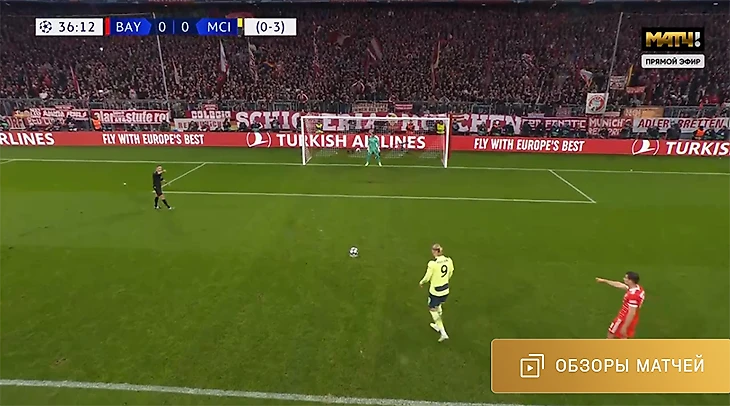 Интересная деталь: уже во время разбега норвежца Леон Горетцка забежал в штрафную и выкинул какой-то предмет, сбив настрой Эрлинга.