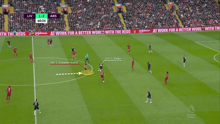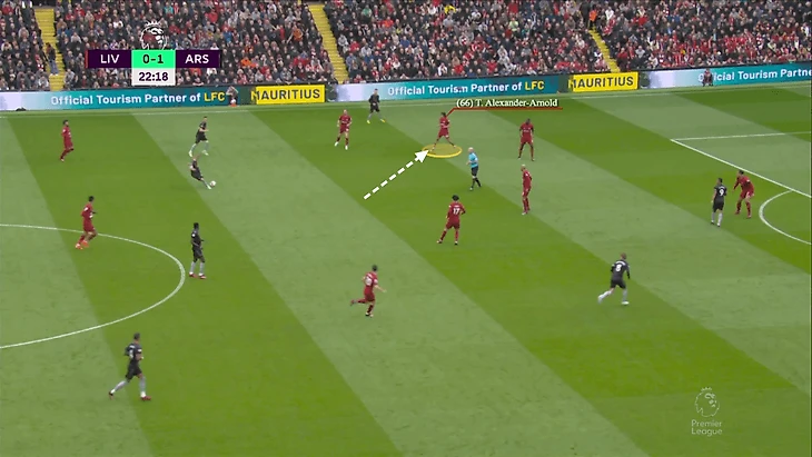 Находясь на позиции в центре, Александер-Арнолд должен быть в состоянии принять мяч и с помощью своих передач продвинуть команду вверх по полю. Изначально проблема заключалась в том, чтобы обойти интенсивный прессинг «Арсенала», заставив его владеть мячом на более глубоких позициях.
