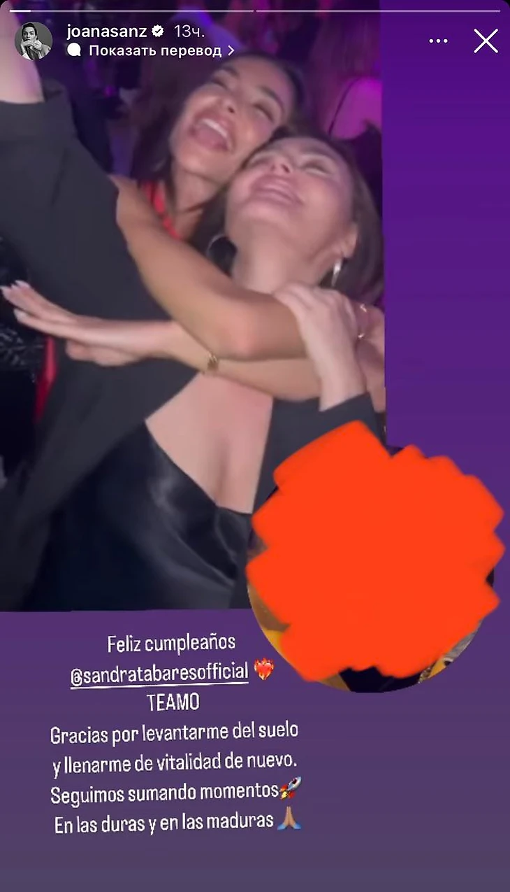 А в среду Санс выложила в сторис пост, обращенный к близкой подруге – известной испанской модели Сандре Табарес.