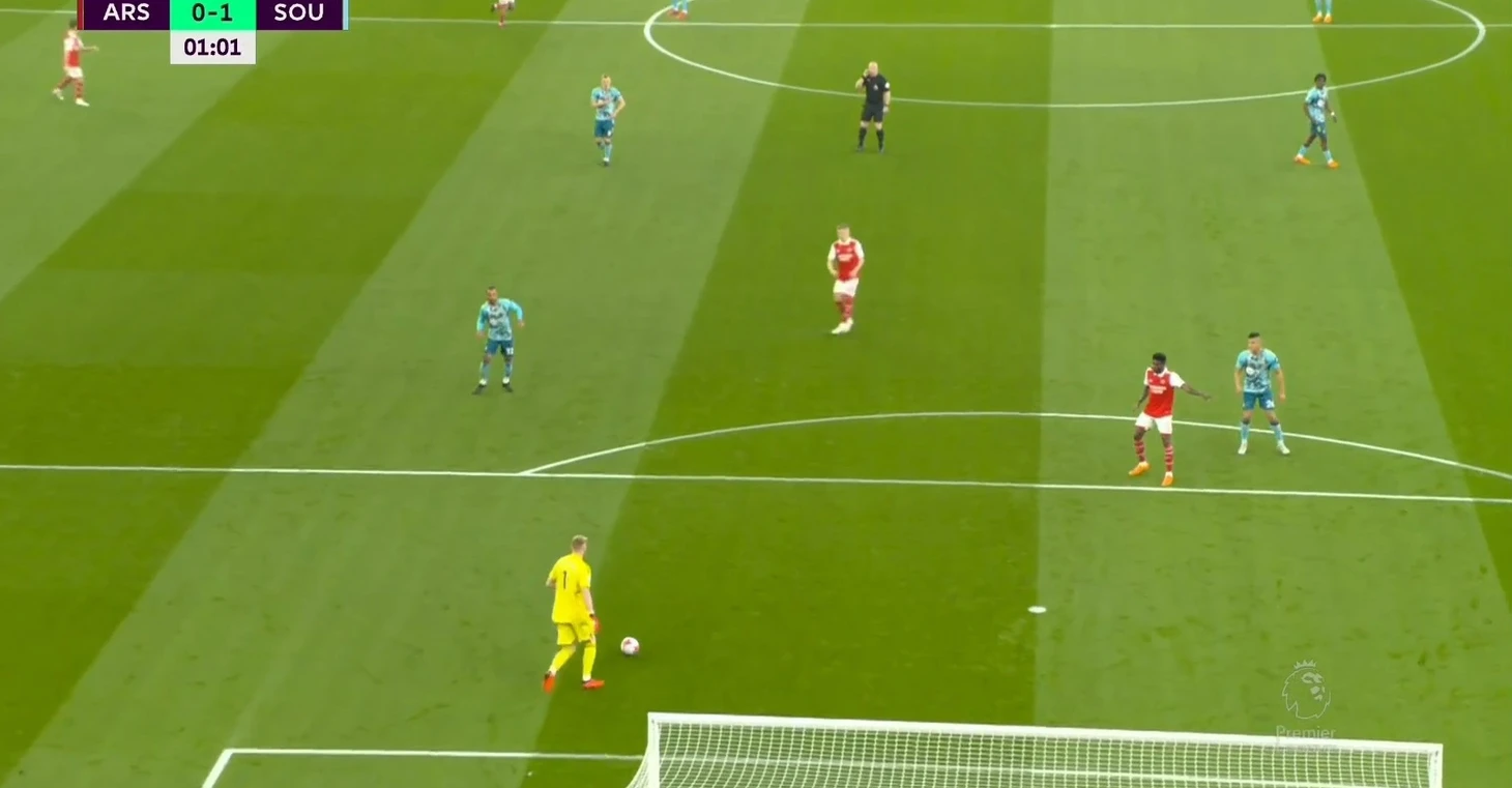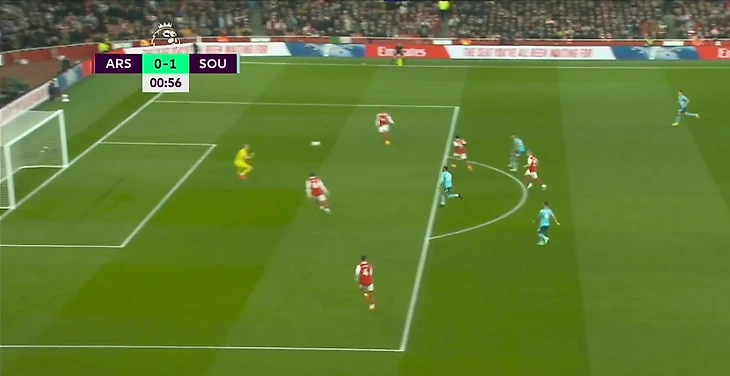 Уже на 20-й секунде матча против «Саутгемптона» кипер привез. Покатил на Александра Зинченко, но не заметил Карлоса Алькараса, притаившегося за спиной Томаса Парти.