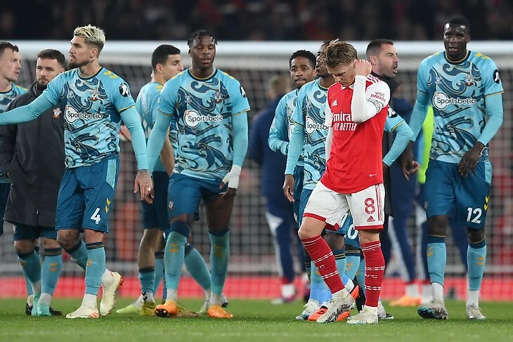 В середине второго тайма казалось, что этот «Арсенал» заканчивает чемпионскую гонку еще до такой важной и ожидаемой встречи с «Манчестер Сити». Вместо того, чтобы продолжить спасение после двух быстро пропущенных (в том числе на 27-й секунде после дикой ошибки Аарона Рэмсдейла), лондонцы получили от последней команды АПЛ еще.